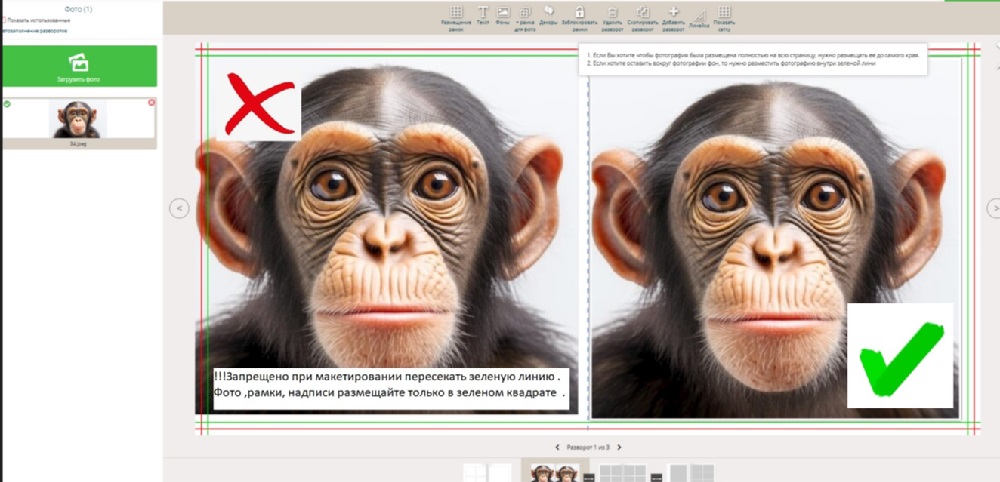 !!!Запрещено при макетировании в редакторе пересекать зеленую линию .Фото ,рамки, надписи размещайте только в зеленом квадрате .
